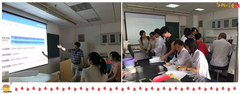 流式上機(jī)培訓(xùn)上午8點(diǎn)半開(kāi)始,首先由華中科技大學(xué)同濟(jì)醫(yī)學(xué)院免疫系梁智輝老師為大家詳細(xì)介紹本次實(shí)驗(yàn)的相關(guān)內(nèi)容,包括:檢測(cè)外周血中的T/B/NK/NKT/Tregmarker選擇、panel設(shè)置、對(duì)照選擇/設(shè)置,protocol染色操作及注意事項(xiàng),流式操作標(biāo)準(zhǔn)化之抗體稀釋