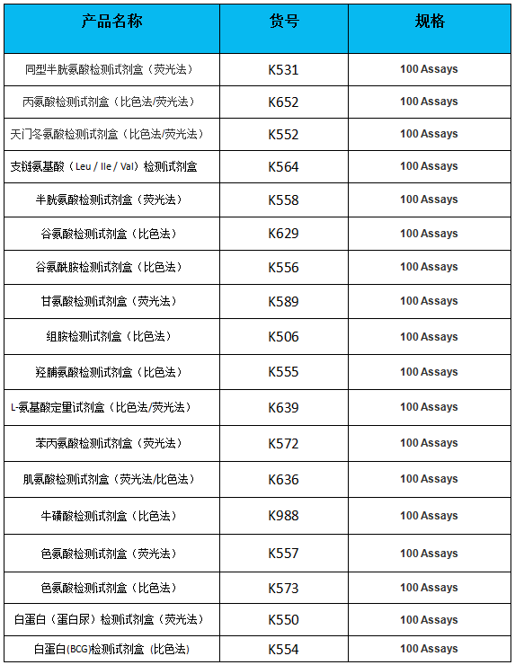 更多氨基酸檢測試劑盒,不容錯過!