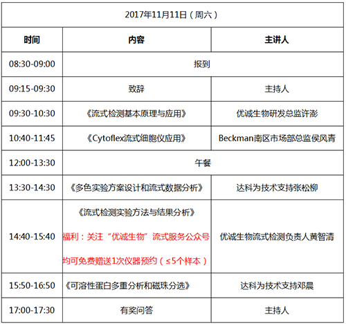 此次流式培訓(xùn)班2017年11月11日(周六)-12日(周日)在長沙興工國際工業(yè)園舉辦,該培訓(xùn)班分為理論課程和實(shí)驗(yàn)課程。理論課程主要側(cè)重于基礎(chǔ)知識的講解、實(shí)驗(yàn)方案、實(shí)驗(yàn)過程、實(shí)驗(yàn)結(jié)果展示等。實(shí)驗(yàn)課程內(nèi)容豐富多彩,各種Demo實(shí)驗(yàn),既讓您輕松學(xué)習(xí)前期的實(shí)驗(yàn)操作,上機(jī)演示,又有后期的數(shù)據(jù)處理及流式的應(yīng)用,如LEGENDplex多因子流式檢測Demo演示。名額有限,歡迎大家踴躍報(bào)名。