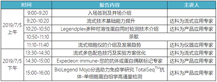 達(dá)科為生物公司作為國(guó)內(nèi)一流的生物試劑供應(yīng)商,多年來(lái)在全國(guó)各地免費(fèi)舉辦了百余場(chǎng)流式培訓(xùn)班,取得了熱烈的反響和良好的反饋。此次流式培訓(xùn)班將于2019年7月5日-7月7日舉辦。