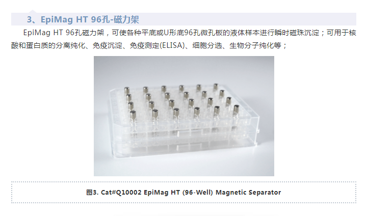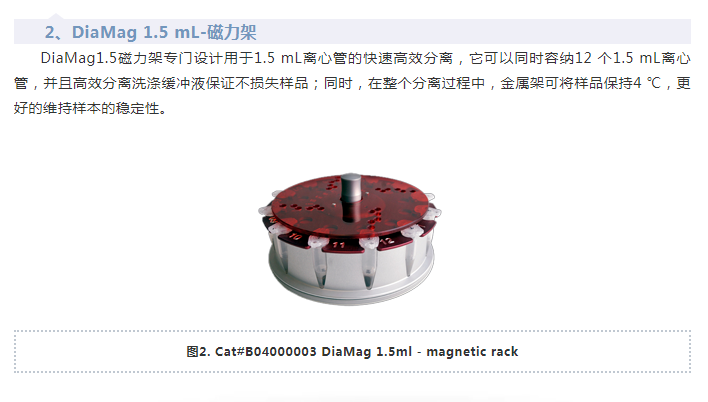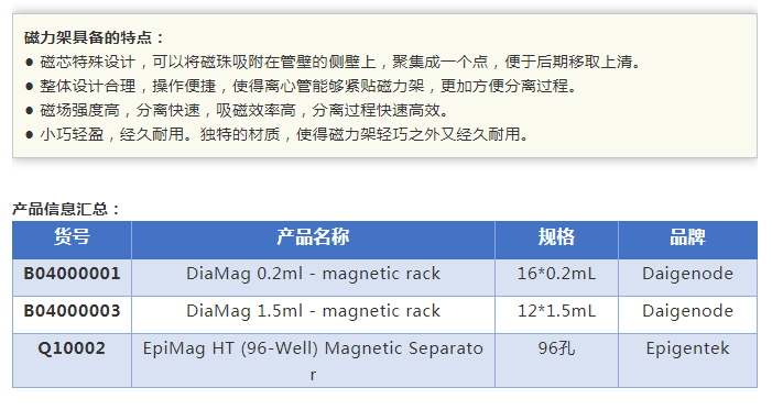 在分子實驗過程中,磁珠法核酸純化、磁珠法免疫沉淀實驗如:IP,Co-IP,ChIP等,都需要一個高效金屬磁力架,它不僅可以實現(xiàn)核酸和蛋白質的高效磁珠分離,還可以簡化實驗操作提高實驗效率。隨著磁珠在核酸或蛋白分離方面的應用普及,磁力架成為了實驗室的必備小工具。