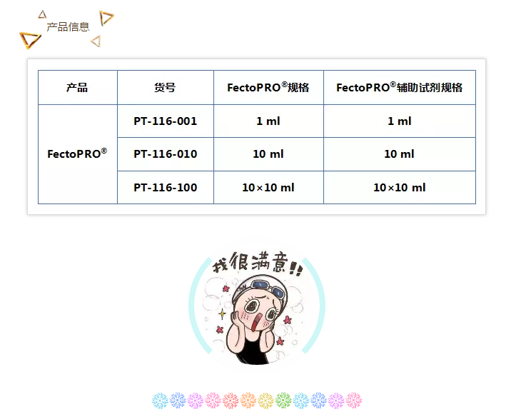FectoPRO?采用嚴格管控的生產(chǎn)流程進行生產(chǎn)和配置,確保各實驗結(jié)果的高度可重復(fù)性。此外,為了符合現(xiàn)行的監(jiān)管準則,F(xiàn)ectoPRO?還采用了先進的質(zhì)控流程,包括確保批次間的蛋白質(zhì)生產(chǎn)率有絕佳一致性的質(zhì)量指標。