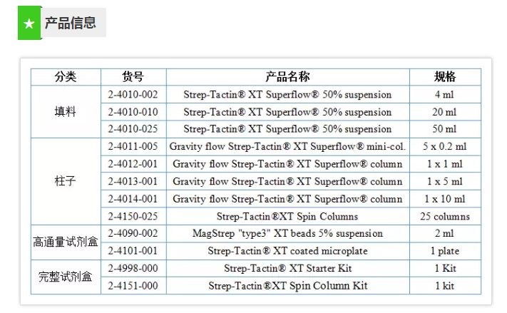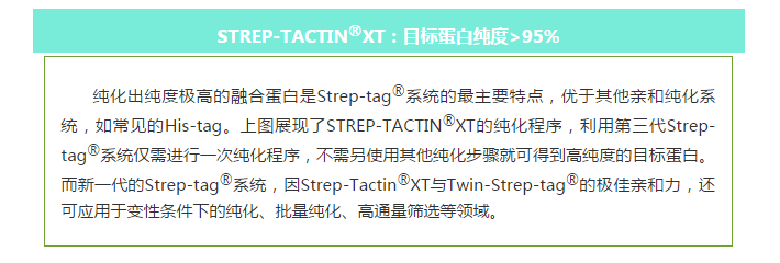 Strep-tag?是IBA life sciences基于生物素(Biotin)和鏈霉親和素(Streptavidin)之間的結(jié)合反應(yīng)開(kāi)發(fā)的蛋白純化系統(tǒng)。第三代Strep-tag?系統(tǒng):「Strep-Tactin?XT:Twin-Strep-tag?」蛋白純化系統(tǒng),其結(jié)合力可達(dá)pM級(jí)別但仍保持結(jié)合的可逆性和固定化蛋白的溫和復(fù)蘇能力。因此,用Strep-Tactin?XT 系統(tǒng)能有效提高您目標(biāo)蛋白的純度,解決您實(shí)驗(yàn)中所遇到的常見(jiàn)問(wèn)題。