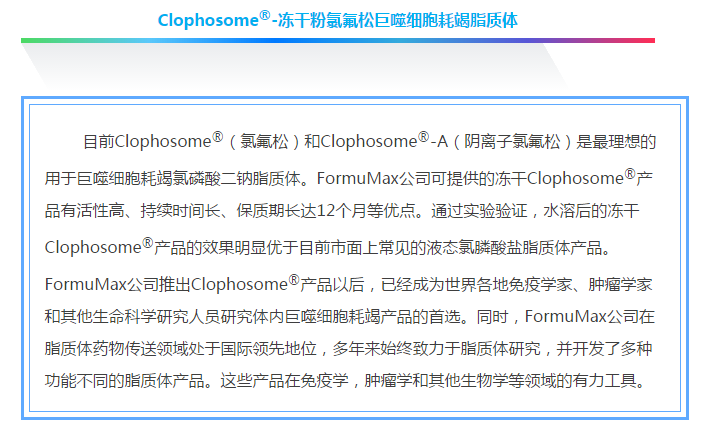 備注:FormuMax公司還可提供免費的Clophosome?可供試用(自付運費)。