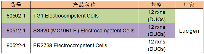 用于噬菌體展示文庫篩選,轉(zhuǎn)化效率是Stratagene的2-4倍