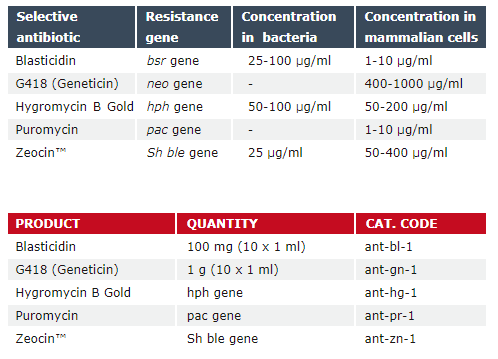 InvivoGen的篩選抗生素可與其他篩選抗生素或與細(xì)胞培養(yǎng)過程中預(yù)防支原體,細(xì)菌,真菌污染的抗微生物抗生素聯(lián)合使用。有不同的規(guī)格可供選擇。