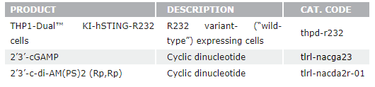 InvivoGen提供一系列STING篩選服務(wù)的選擇,用于鑒定激活或抑制一些STING突變體的分子。欲知更多信息請聯(lián)系我們。