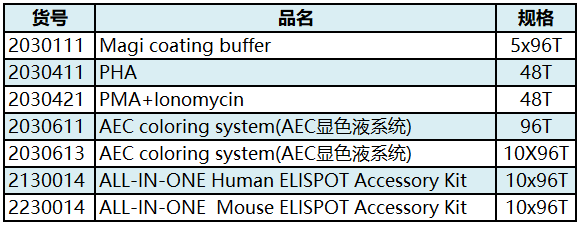 達(dá)優(yōu)ELISPOT產(chǎn)品列表