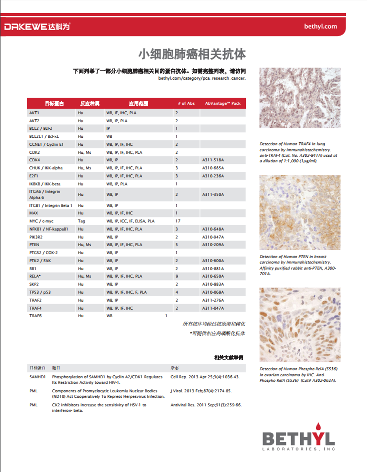 Bethyl --肺癌相關(guān)研究抗體