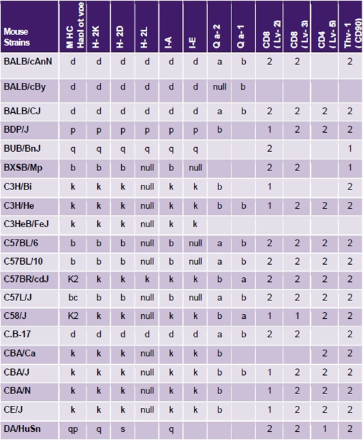 實(shí)驗(yàn)室常用小鼠單倍型及同種異型抗原