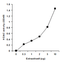 圖1.從MCF-7細(xì)胞中制備核提取物,并測(cè)定不同量的提取物中HDAC的活性, 結(jié)果顯示該試劑盒具有高特異性