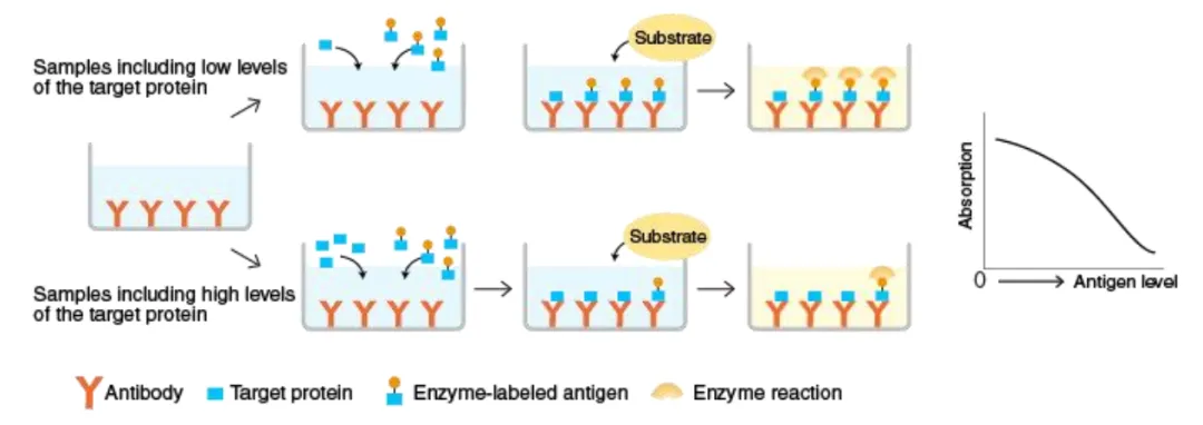 1、樣本中分析物水平較低可以使用哪些方法改進(jìn)檢測(cè)?通過增加洗滌次數(shù)和兩次洗滌之間的浸泡時(shí)間降低背景。控制測(cè)定精確度。例如,在移液時(shí)要更加小心和一致,使用干凈的紙巾拍板,以避免污染。增加孵育時(shí)間。但這通常也會(huì)增加背景,因此檢測(cè)靈敏度不一定會(huì)增加。如果可以的話,建議濃縮樣本。使用5-PL曲線擬合方法,更準(zhǔn)確地計(jì)算標(biāo)準(zhǔn)曲線下端的樣本濃度。在大多數(shù)情況下,樣本可能只含有非常低或無(wú)法檢測(cè)到的分析物水平。這時(shí)無(wú)論如何操作和測(cè)定,仍然無(wú)法檢測(cè)到準(zhǔn)確濃度。2、包板應(yīng)如何存放?如果包被完抗體的板不能立即使用,應(yīng)將其密封并在4°C儲(chǔ)存過夜。3、為什么使用同一克隆號(hào)的捕獲抗體和檢測(cè)抗體建立ELISA實(shí)驗(yàn)沒有成功?如果使用相同的克隆抗體進(jìn)行檢測(cè)和捕獲,則抗原表位可能已經(jīng)被其中一種抗體占據(jù)并抑制另一抗體結(jié)合。建議捕獲和檢測(cè)抗體選擇不同的克隆號(hào)。4、應(yīng)該使用哪種包被緩沖液?一般來(lái)說,建議使用PBS(pH 7.4)或碳酸鹽緩沖液(pH 9.5)。確切的包被緩沖液可能取決于要檢測(cè)的細(xì)胞因子。5、為什么細(xì)胞因子流式染色與ELISA測(cè)定之間沒有良好的相關(guān)性?流式細(xì)胞術(shù)檢測(cè)的胞內(nèi)細(xì)胞因子代表檢測(cè)時(shí)的陽(yáng)性細(xì)胞比例,ELISA代表細(xì)胞因子隨時(shí)間的積累量??赡苌倭康年?yáng)性細(xì)胞在一段時(shí)間之后會(huì)分泌大量的細(xì)胞因子于培養(yǎng)上清中,導(dǎo)致ELISA的結(jié)果與胞內(nèi)因子染色的結(jié)果不一致6、可以使用細(xì)胞培養(yǎng)板進(jìn)行ELISA實(shí)驗(yàn)嗎?不可以。細(xì)胞培養(yǎng)板設(shè)計(jì)用于達(dá)到細(xì)胞培養(yǎng)目的,通常不具有高蛋白結(jié)合能力。對(duì)于ELISA,建議使用具有高蛋白結(jié)合能力的板,例如 Nunc Maxisorp?酶標(biāo)板。7、血清等樣本可以重復(fù)使用嗎?不建議重復(fù)使用樣本。為了獲得準(zhǔn)確的結(jié)果,樣本應(yīng)分裝儲(chǔ)存,僅供一次性使用。如果重復(fù)使用樣本,需要進(jìn)行額外的驗(yàn)證實(shí)驗(yàn),以確保實(shí)驗(yàn)準(zhǔn)確性。8、在什么步驟中,可以暫停ELISA實(shí)驗(yàn)?可以冷凍板子以備后用嗎?最好遵循說明書操作,沒有任何可以暫停實(shí)驗(yàn)的步驟。但是,如果一定需要暫停實(shí)驗(yàn),建議在封閉步驟(包被捕獲抗體后)。可以在孔中加入200 μL封閉緩沖液,并將板在4°C過夜(信號(hào)損失最小或沒有)或在-20°C冷凍幾天(可能會(huì)對(duì)信號(hào)產(chǎn)生一些影響)。不建議在第一步進(jìn)行(在4°C用捕獲抗體包被超過16-20小時(shí)),因?yàn)榭赡軙?huì)導(dǎo)致高背景。9、包被捕獲抗體可以超過過夜的時(shí)間嗎?通常來(lái)說,建議在4°C包被16-20小時(shí)。較長(zhǎng)的孵育時(shí)間可能會(huì)增加與板結(jié)合的捕獲抗體量,會(huì)增加背景。10、培養(yǎng)基中的酚紅會(huì)干擾ELISA測(cè)定嗎?不會(huì),培養(yǎng)基中酚紅的吸光度可以在計(jì)算時(shí),通過扣除空白孔中本底的吸光度而消去,因此不會(huì)干擾ELISA測(cè)定的讀數(shù)。11、對(duì)于一些ELISA試劑盒,為什么血清樣本需要稀釋?血清樣本稀釋可以盡量減少樣本和標(biāo)準(zhǔn)品之間的基質(zhì)差異,以獲得更加準(zhǔn)確的結(jié)果。12、如何提高ELISA檢測(cè)獲得更好的信號(hào)和靈敏度?增加孵育時(shí)間,但這也可能會(huì)增加檢測(cè)的背景,同時(shí)不改變靈敏度。在孵育步驟中搖動(dòng)板子。確保標(biāo)準(zhǔn)品在使用前完全溶解。在兩次洗滌之間增加浸泡時(shí)間,以進(jìn)一步降低背景。如果可以的話,在450-570 nm處讀板以減去本底。通過控制移液誤差或使用更大體積的洗滌緩沖液洗滌來(lái)改善CV值。使用5-PL或4-PL曲線擬合方法,而不是線性曲線擬合。
